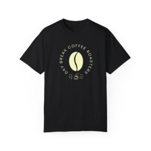 Keep it simple, stylish, and coffee-inspired with this Coffee Bean T. Featuring a bold coffee bean emblem surrounded by the Day Break name, this front-printed tee is a clean and timeless way to rep your favorite roaster.